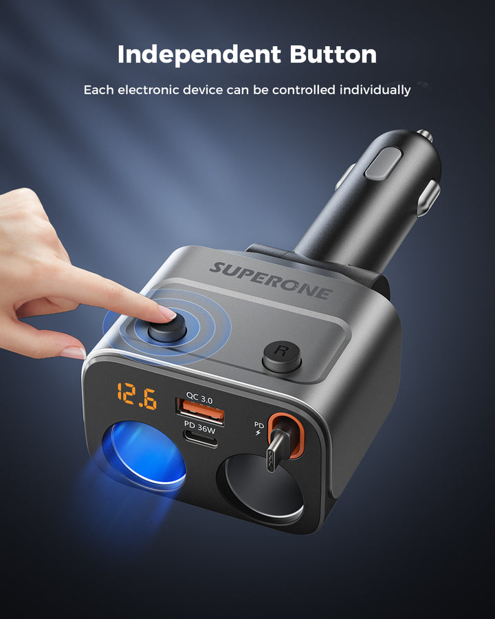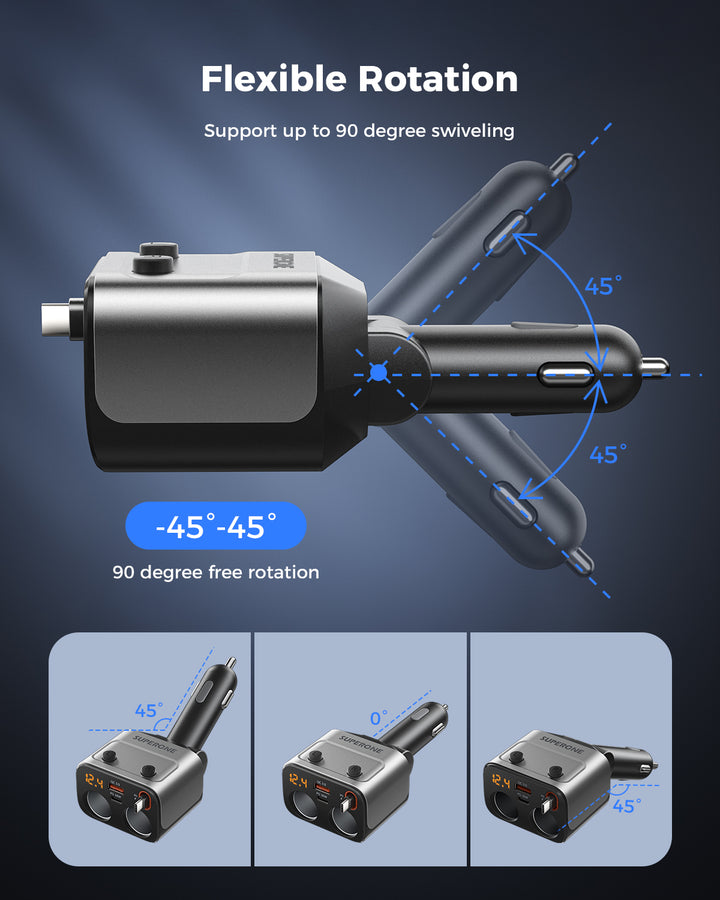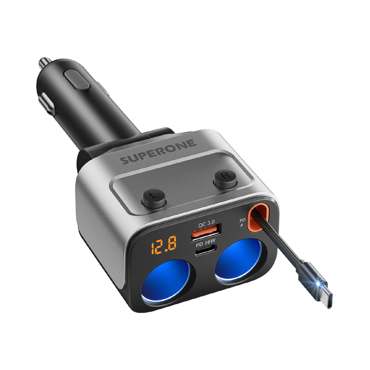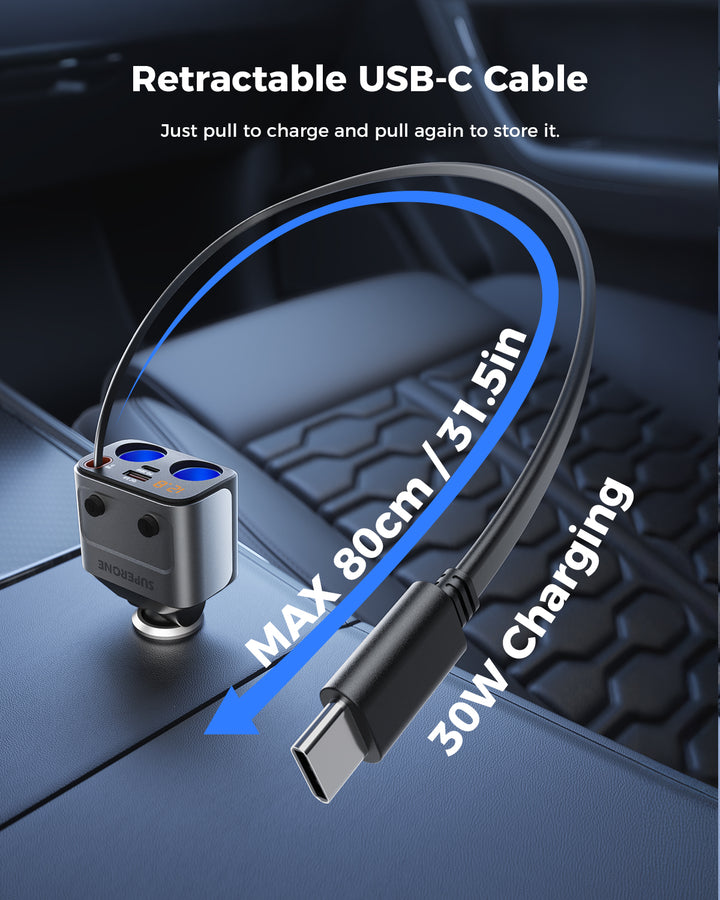 180W Car Charger & Expander with Retractable Cable