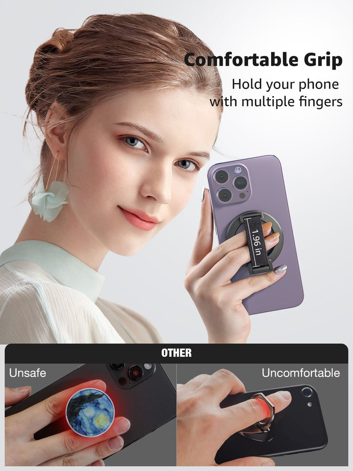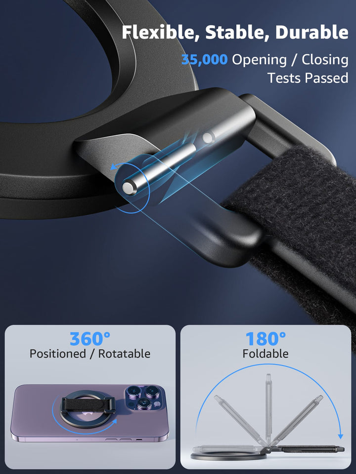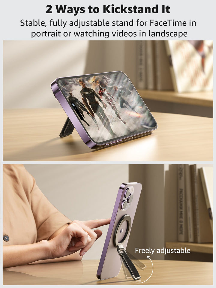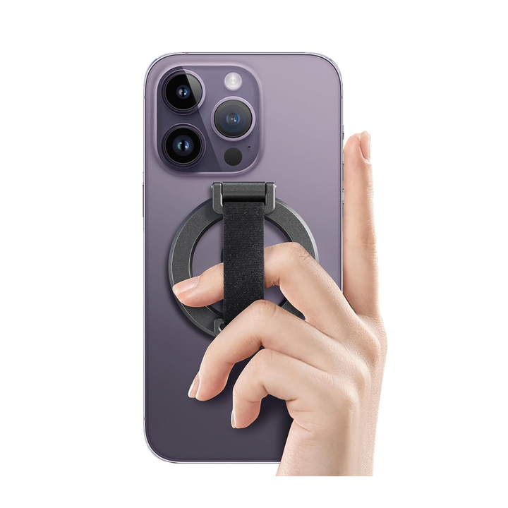 And it's a kickstand! So stable. The hinge they developed here is magic. The magnet ring holds on strong, but also spins easily to change the kickstand angle or pull the whole thing off for charging.
