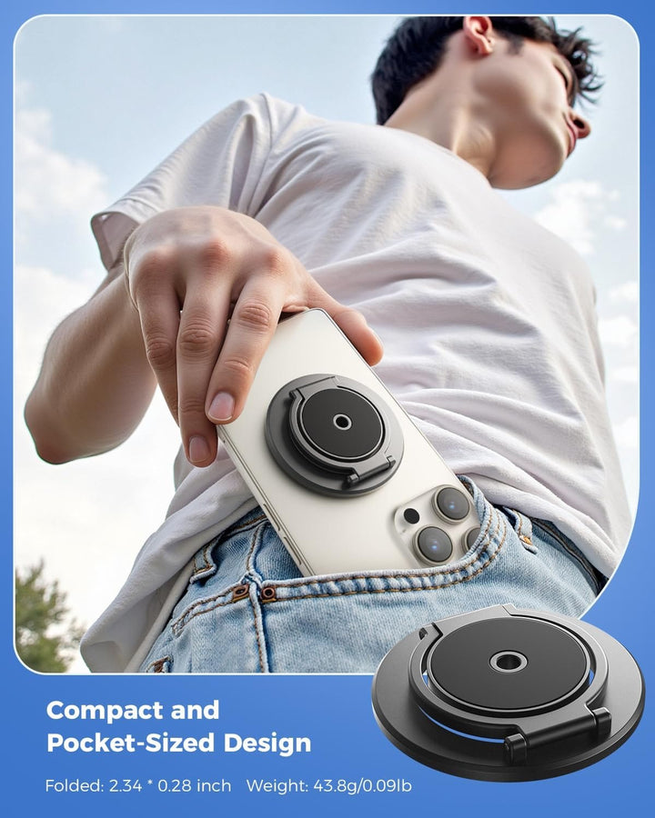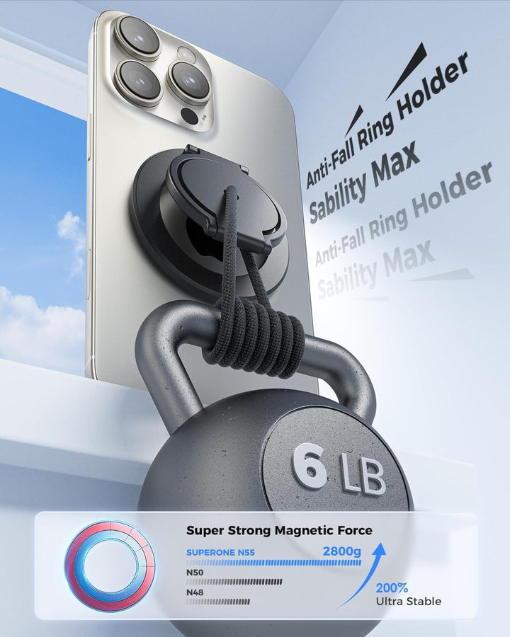 Unlock triple functionality. The SUPERONE MagSafe grip is a ring holder, a 1/4"-20 tripod adapter, and a magnetic mount for iron surfaces. Perfect for stable shooting, vlogging, and hands-free use. Compatible with iPhone 12-15 series and MagSafe cases.