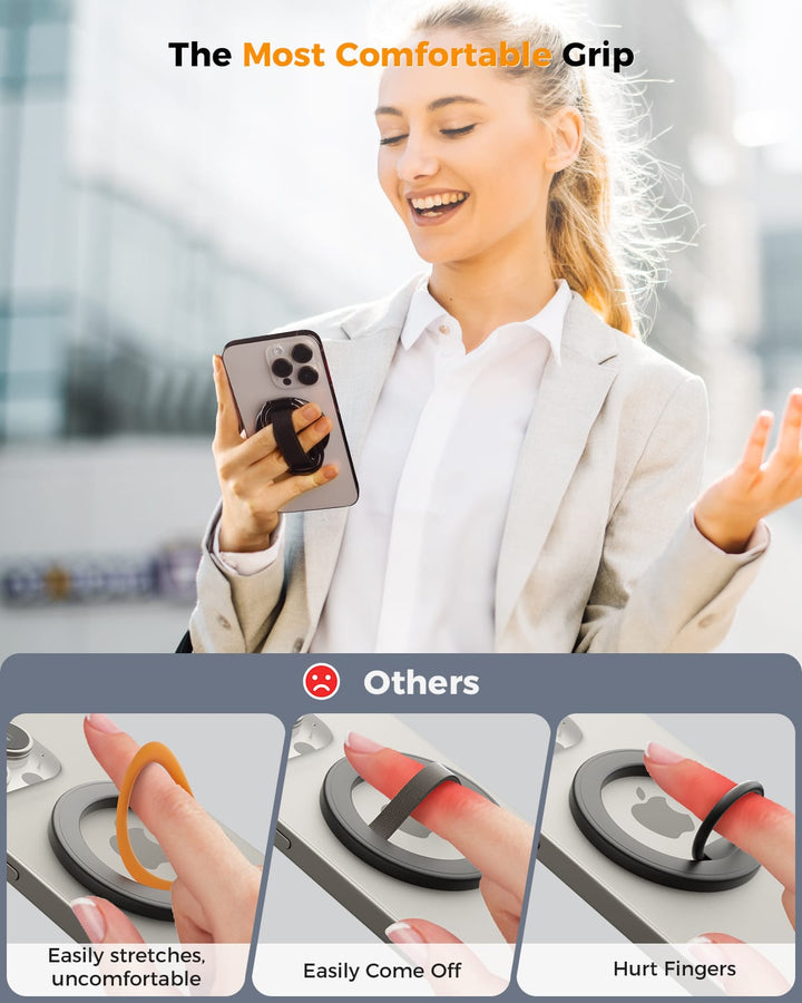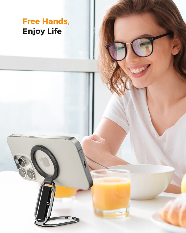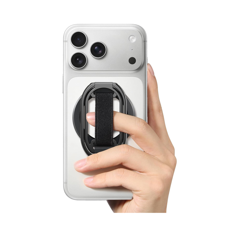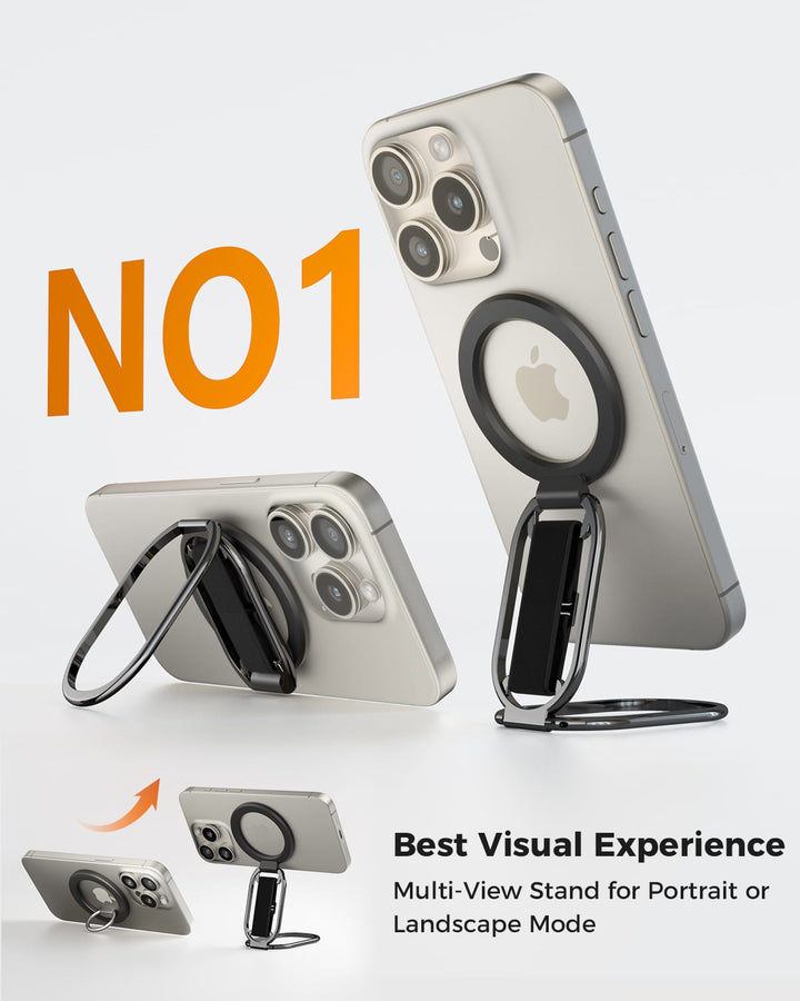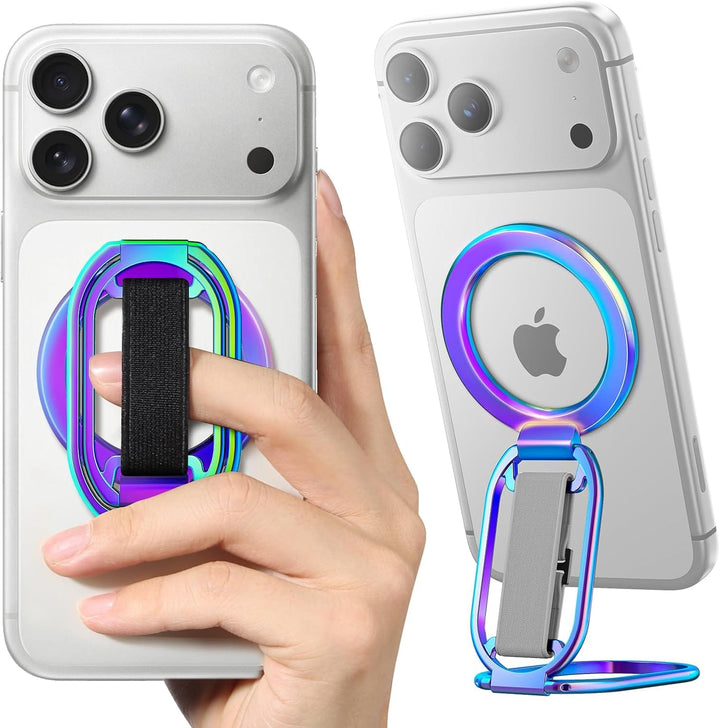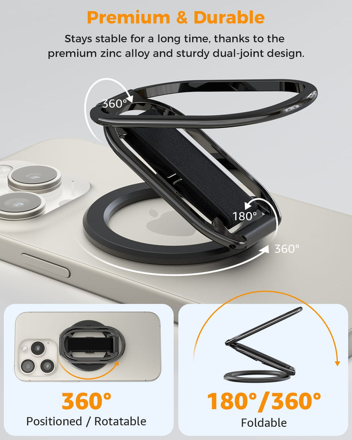 5.5lbs MagSafe Grip & Stand. 360° adjustable, 50,000-fold tested. Velcro strap for comfort. Removable for charging. For iPhone 12-17.