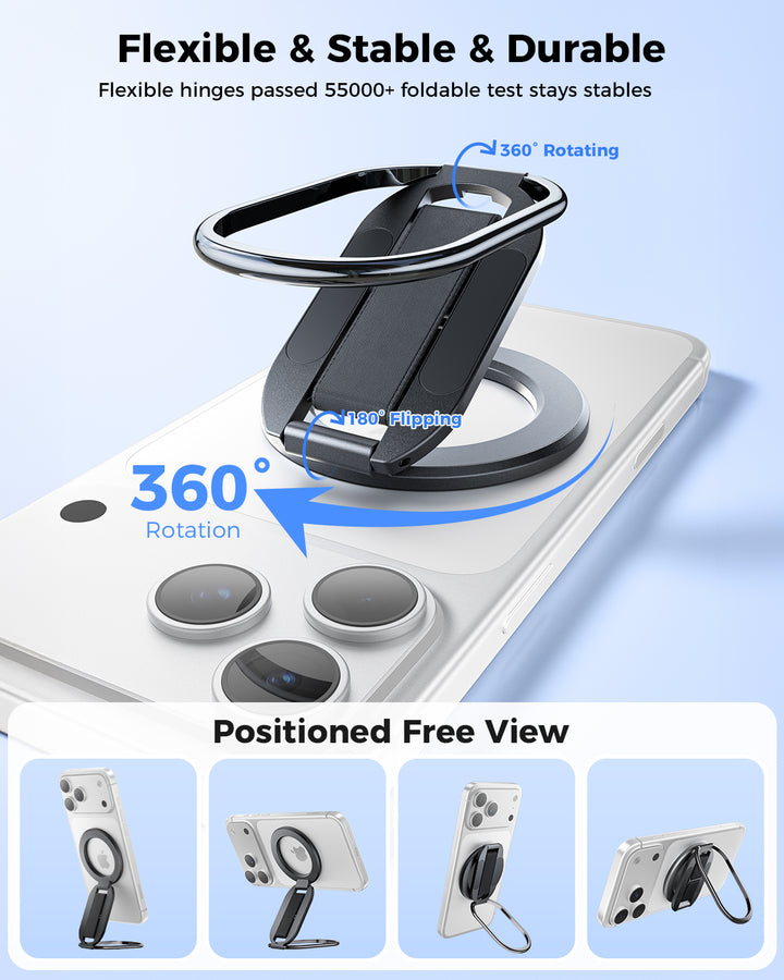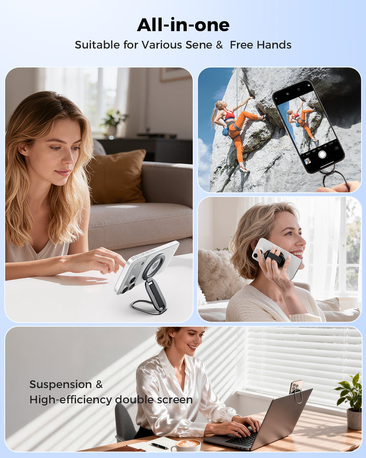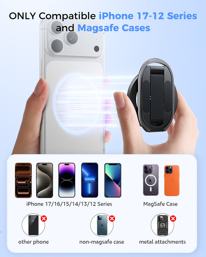 Upgrade your iPhone experience with the [2025 Upgraded] SUPERONE MagSafe Phone Grip. Features a comfortable elastic finger strap, ultra-strong dual-sided magnets, and a multi-angle kickstand. Enjoy a secure grip, hands-free viewing, and seamless wireless charging compatibility for iPhone 12-17 series.